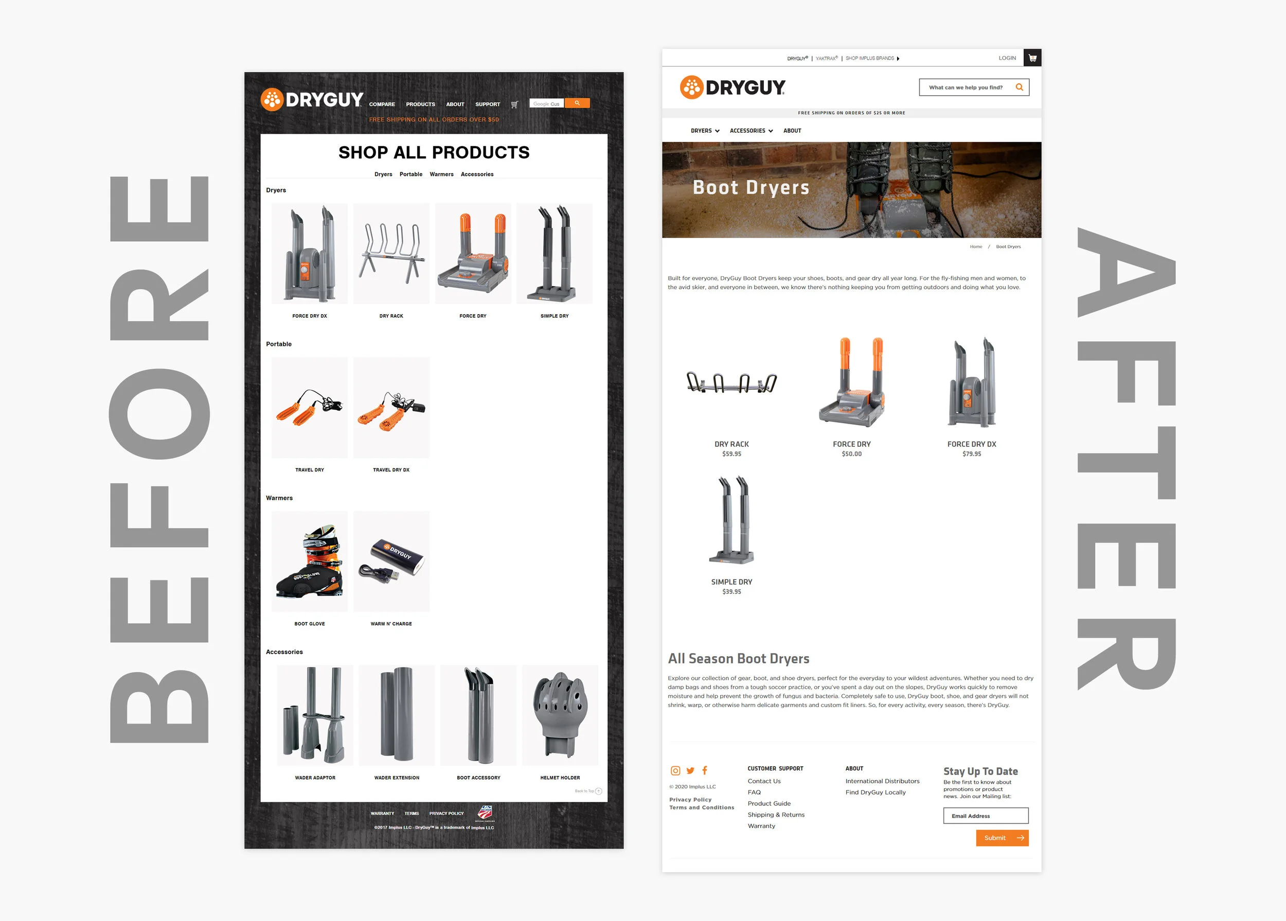 As part of an effort at Implus to enhance and differentiate the DryGuy brand from competitors, the digital team was tasked with re-designing the entire website and updating the brand’s story.